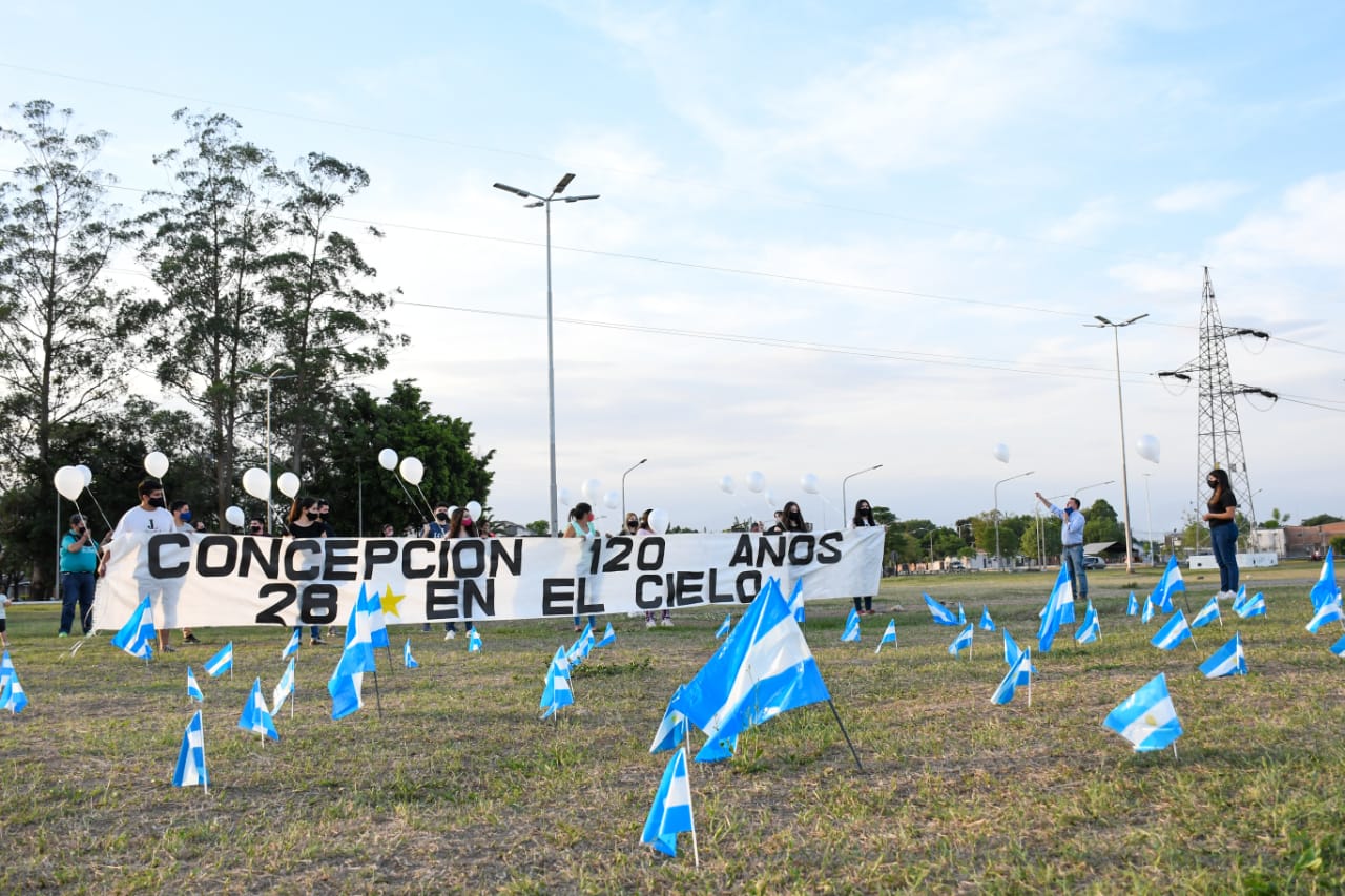 En la tarde de este sábado, en la rotonda que une las rutas N° 38 y N°65, tuvo lugar un evento organizado por la Juventud Lebensohn, acompañados por el Legislador Raúl Albarracín, para rendir un homenaje a los 28 fallecidos por coronavirus en la ciudad de Concepción.