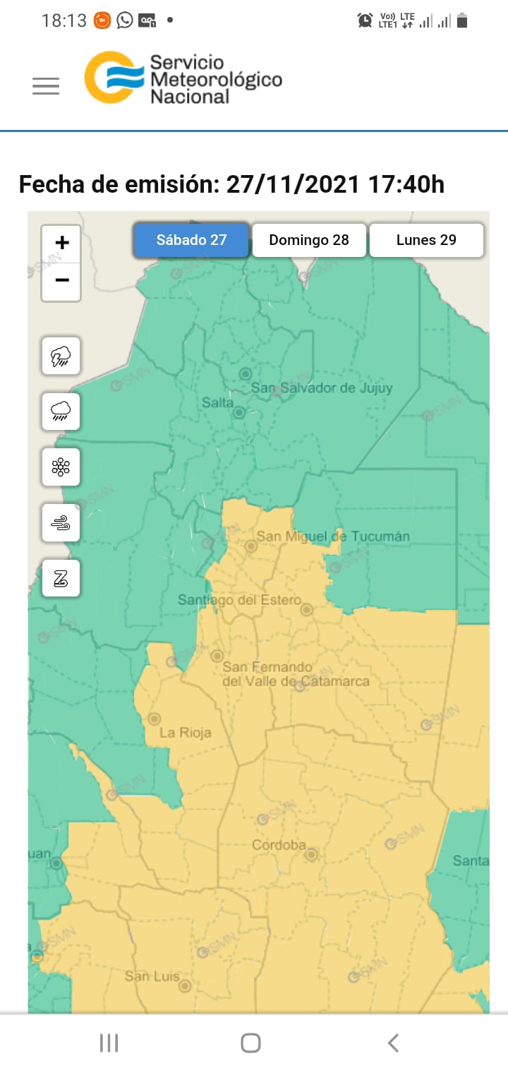 La provincia de Tucumán se encuentra bajo Alerta Amarilla, emitida por el Servicio Meteorológico Nacional (SMN), por posibles tormentas durante la tarde y la noche de este sábado y madrugada del domingo.
