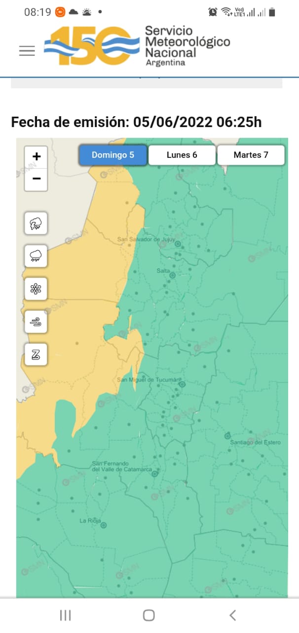 El Servicio Meteorológico emitió  un nuevo alerta nivel Amarillo por viento zonda en la zona Cumbres de Quilmes para la tarde de éste domingo.