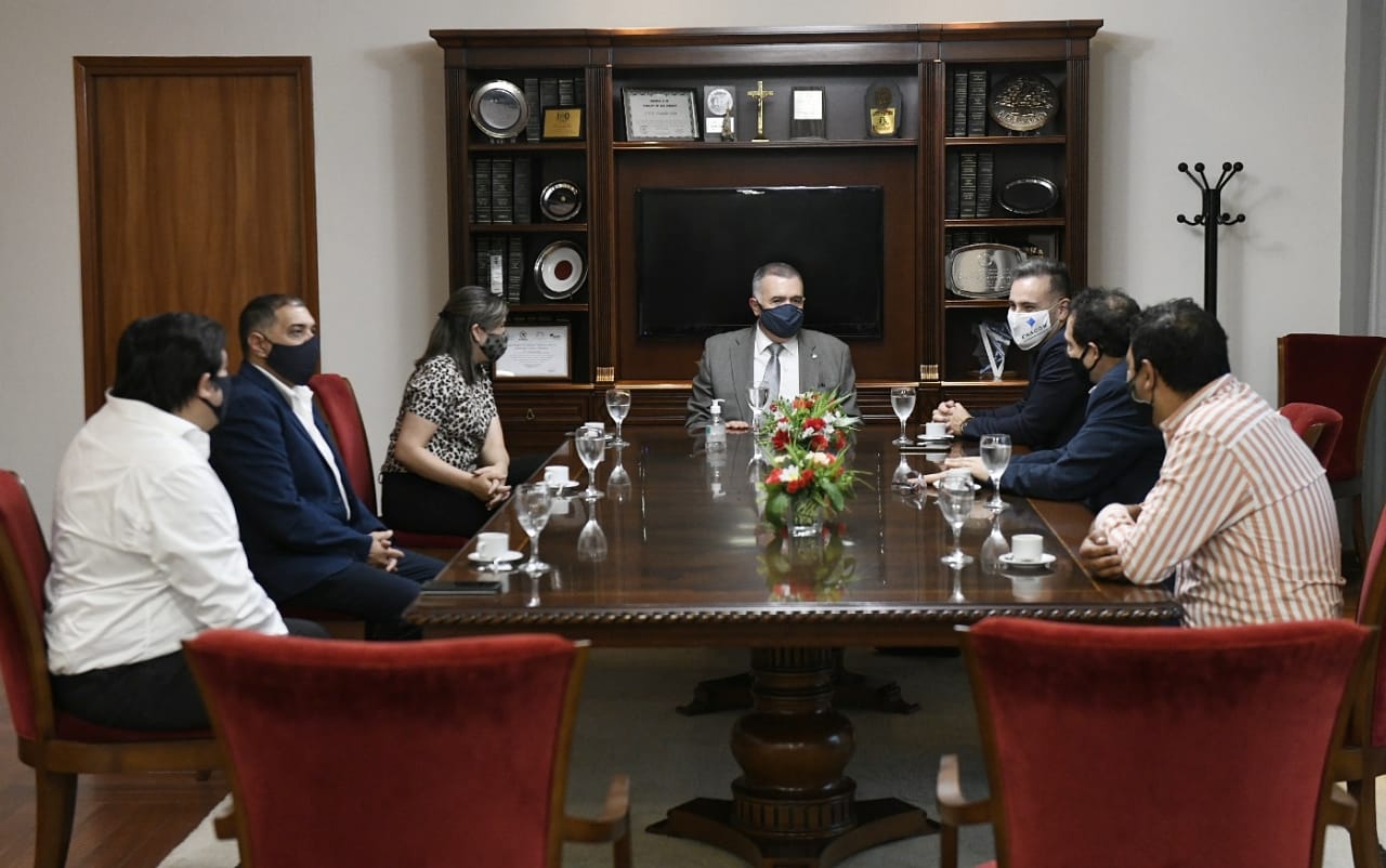 El vicegobernador Osvaldo Jaldo junto a los legisladores Daniel Deiana y Eduardo Cobos recibió al delegado Tucumán del Ente Nacional Comunicaciones (ENACOM) Ramiro Rearte y la diputada nacional Mabel Carrizo, donde trataron temas relacionados al plan Nacional Conectar para la provincia de Tucumán en el marco de las politicas federales impulsadas por el presidente Alberto Fernández.
