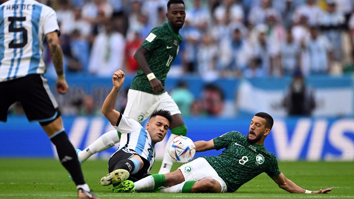 20′: Argentina busca con Lautaro Martínez, que desborda y el centro es controlado por el arquero Al Owais