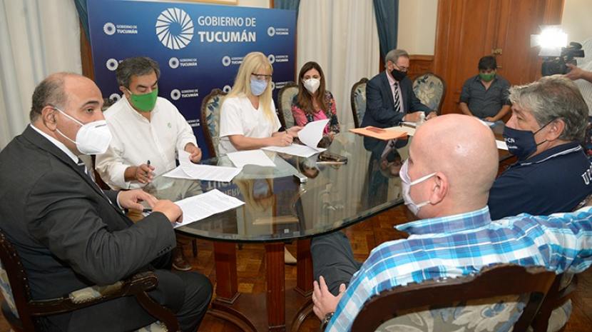 El acuerdo se rubricó en Casa de Gobierno con la presencia del gobernador, Juan Manzur, la ministra de Salud Pública, Rossana Chahla, la ministra de Gobierno y Justicia, Carolina Vargas Aignasse y el representante de UPCN Salud, Francisco Osorio.
