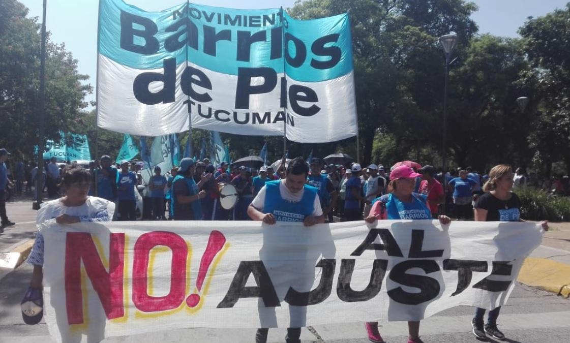 Sin obtener respuestas favorables por parte del Gobierno por el retraso en el pago del programa provincial de Operadores Comunitarios y de la partida de comedores infantiles, que ronda los $ 29.800, la organización social Barrios de Pie se manifiesta en plaza Independencia