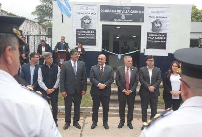 Jaldo aseveró: “visitando un centro de monitoreo donde se agregaron cámaras de seguridad que en poco tiempo estará conectado al centro de monitoreo del 911. Esto formará parte del circuito integral de seguridad de la provincia de Tucumán”. Además destacó: “inauguramos una comisaría que no tenía Villa Carmela. Muchas veces los habitantes tenían que ir a Yerba Buena para hacer trámites”.