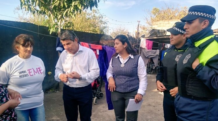 En la ocasión, el ministro estuvo acompañado por un equipo conformado por asistentes sociales, policías mediadores, policías de la zona, por la coordinadora de la Organización Red de Mujeres Emprendedoras y Constructoras de la Paz Latinoamérica, Mariela Domenichelli, y su referente de la zona Mujeres EME.