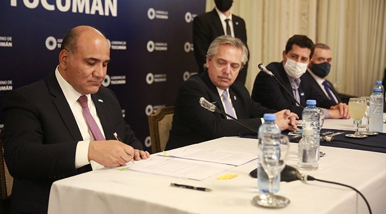 En su primera misión oficial al interior del país, luego de haberse decretado el aislamiento preventivo, social y obligatorio por la pandemia de COVID-19, el presidente de la Nación, Alberto Fernández, visitó este jueves Tucumán. En Casa de Gobierno, junto al gobernador, Juan Manzur, firmó un convenio para el desarrollo de una megaobra sanitaria que tendrá especial relevancia para los habitantes del Este del Gran San Miguel de Tucumán.