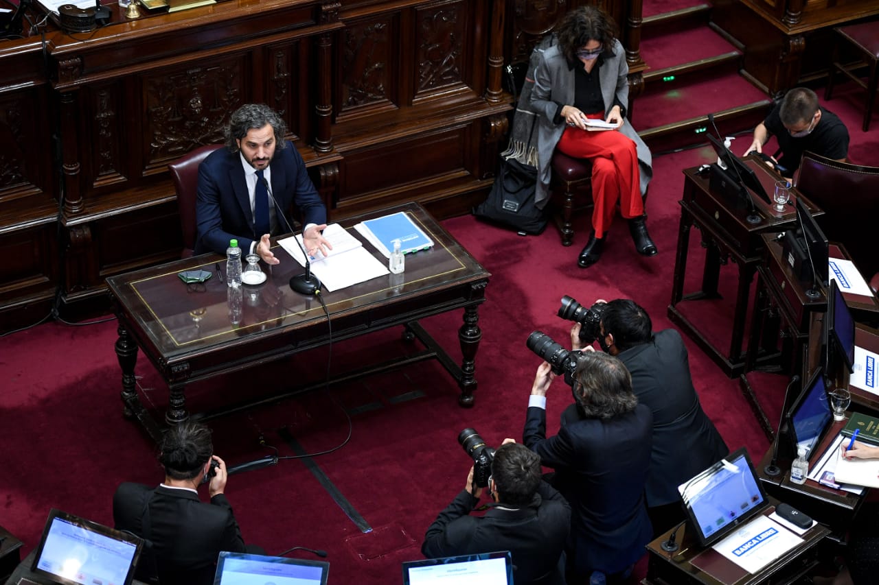 El jefe de Gabinete envió por escrito las respuestas a 1.160 preguntas elaboradas por la Secretaría de Relaciones Parlamentarias, Institucionales y con la Sociedad Civil, donde detalló la marcha del Gobierno Nacional y las principales iniciativas del Poder Ejecutivo para paliar los efectos de la segunda ola de COVID-19. El informe presentado es el más extenso realizado ante el Senado en la historia de la Jefatura de Gabinete de Ministros.