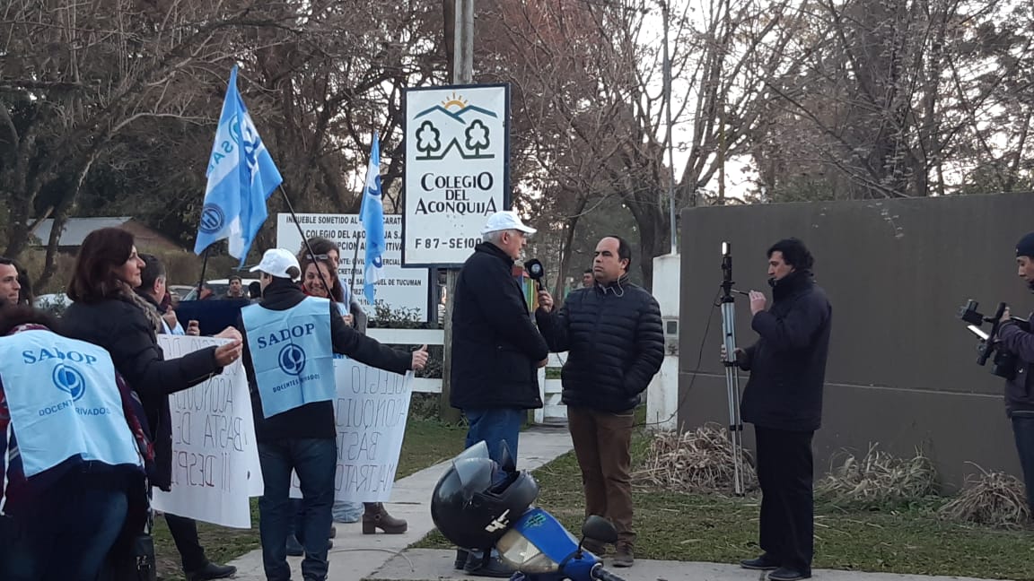 En este sentido, SADOP denunció que «en plena pandemia de Coronavirus – COVID 19, con los docentes enseñando desde su casa el El Colegio del Aconquija de Yerba Buena, no paga el sueldo a sus trabajadores. Exigimos a esta empresa que actúe con la responsabilidad que a un empleador le corresponde y cumpla mínimamente con su primera obligación con sus empleados «pagar el salario».