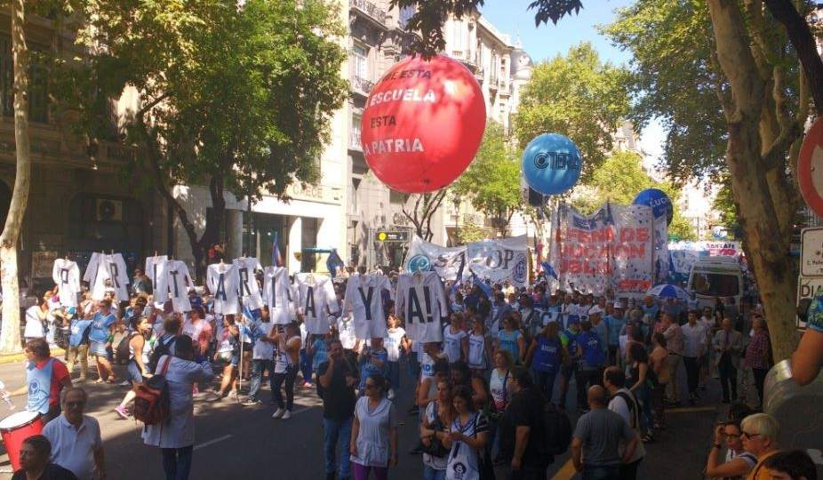 La movilización por el centro porteño se realizó en coincidencia con el primer día de un paro por 72 horas que afectó el inicio del ciclo lectivo en gran parte del país.