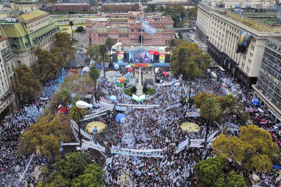 Por último, con la tormenta y truenos intensos sobre la Plaza, envió un mensaje directo a la militancia: «Quiero convocarlos para que cada uno y una, en su lugar de estudio, en el trabajo, en la calle, en el bondi o en el subte, cuente quiénes son los verdaderos responsables de la situación que vive la Argentina en materia de endeudamiento, de falta de dólares, de corridas, para que esta vez la gente pueda decidir con claridad pero, sobre todo, con información».