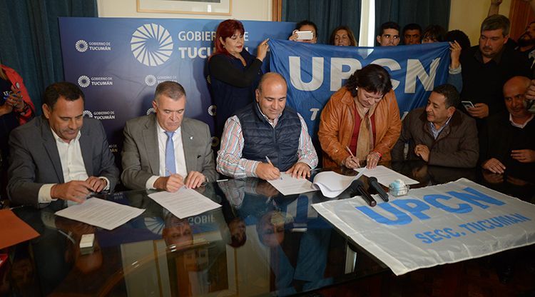 El gobernador Juan Manzur rubricó este mediodía la firma del acta acuerdo con los representantes de la Unión del Personal Civil de la Nación (UPCN) y la Asociación de Trabajadores del Estado (ATE) en la que otorgó un 25% de aumento salarial y la implementación de la cláusula gatillo por inflación para los empleados estatales.