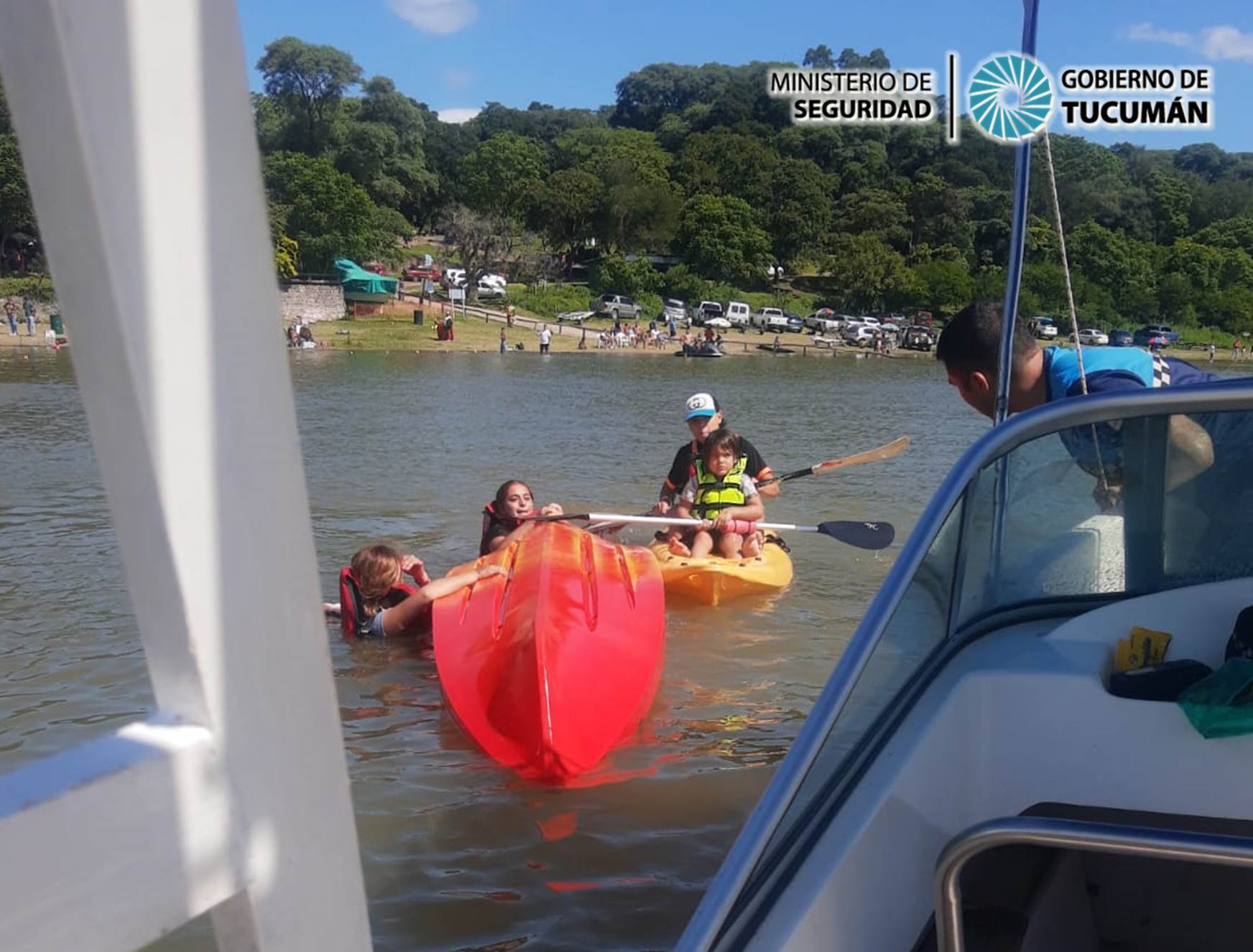 Tres personas fueron rescatadas por personal de la División Policía Lacustre de Tucumán luego de que su kayak perdiera el equilibrio y cayeran a las aguas del dique El Cadillal.