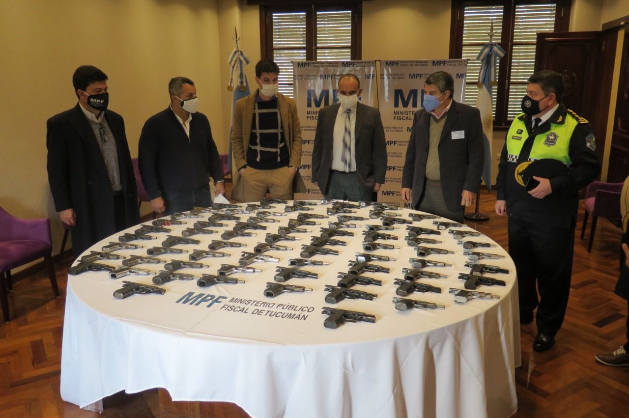 Continuando con la política del ministro fiscal, Edmundo Jiménez, de restituir a la sociedad lo que se recuperó del delito, se hizo entrega de 76 armas (en su mayoría pistolas 9 mm) a la policía provincial. La puesta a disposición de los efectivos de este material es producto del trabajo de recuperación y reparación por parte del Ministerio Fiscal, a través de la Secretaría Judicial y de la Oficina de Efectos Secuestrados. Para ello, se han analizado 600 causas judiciales, lo que demandó un trabajo de más de 5 meses por parte de todas las fiscalías.