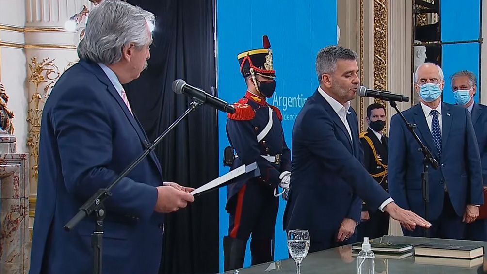 El presidente Alberto Fernández tomó juramento este martes a los nuevos ministros de Desarrollo Social, Juan Zabaleta, y de Defensa, Jorge Taiana, en un acto que se desarrolló en Casa Rosada.