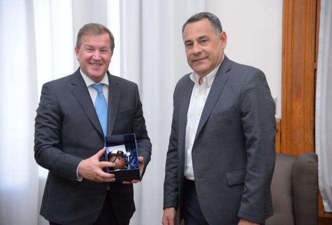 Eduardo Serenellini, secretario de Prensa de la Nación, fue recibido por el ministro de Gobierno y Justicia de la provincia, Regino Amado.