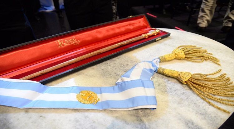 Para ello, fue necesario que una escolta especial de la Policía de Tucumán fuera dispuesta en el escenario del Teatro Mercedes Sosa para custodiar los atributos del mando para el ejercicio del Gobierno de la provincia: la banda celeste y blanca, símbolo de la autoridad, y el bastón, símbolo del poder. Este fue realizado por el maestro orfebre porteño, Juan Carlos Pallarols, y  lleva dos banderas argentinas, el escudo de Tucumán, un mapa de la provincia con la división en departamentos y la sigla del Gobernador.