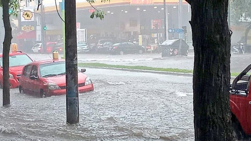 En pocos minutos un diluvio dejó a inundados a varias zonas de la Capital