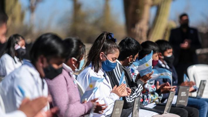 El acto estuvo encabezado por el ministro de Educación de la Provincia, Juan Pablo Lichtmajer; y acompañaron el intendente de Tafí del Valle, Francisco Caliva; el presidente del Ente Tucumán Turismo, Sebastián Giobellina; los comisionados comunales de Colalao del Valle, Gustavo Morales; de Amaicha del Valle, Paul Caillou; y de El Mollar, Jorge Cruz; representantes de la comunidad originaria del pueblo de Quilmes; la señora Pachamama, Francisca Chaile; directivos escolares y alumnos beneficiados.