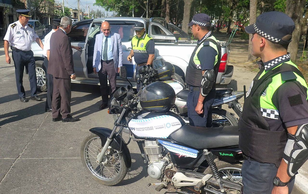 En la sede policial de la ciudad de Monteros, ubicada en Parque 28 de Agosto, el Ministro Fiscal, Edmundo Jiménez, junto a fiscales y funcionarios judiciales y policiales de esa jurisdicción, procedió a la entrega de una camioneta Toyota Hilux y dos motocicletas, destinadas a las fuerzas de seguridad. Los vehículos son aquellos recuperados del delito que desde el MPF se viene cediendo a la policía de la provincia para el uso pertinente.