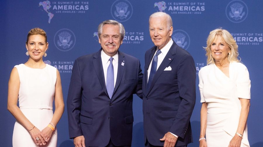 El presidente Alberto Fernández y su par estadounidense Joseph Biden se dieron este miércoles un cálido saludo, en la recepción que el mandatario norteamericano les dio a los jefes de Estado que participan en la IX Cumbre de las Américas.
