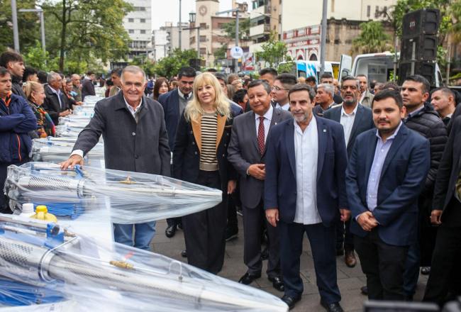 El gobernador, Osvaldo Jaldo, en la mañana del viernes hizo entrega a las 93 comunas rurales y centros asistenciales del interior de nuevos humidificadores, es decir, pulverizadores para la tarea de fumigación contra el mosquito transmisor del dengue.