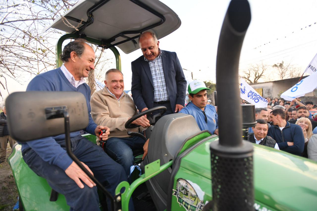 Las actividades comenzaron pasadas las 19 con la inauguración del Espacio de Convivencia Democrática, que contempló la modernización de 350 metros del edificio. Luego, las autoridades realizaron la entrega de un tractor H904 y un tanque acoplado de 10.500 litros, lo que amplió el parque automotor del municipio.