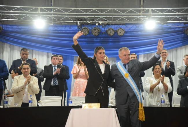 El gobernador, Osvaldo Jaldo, tomó juramento a la intendenta de Aguilares, Gimena Mansilla en el marco de la sesión extraordinaria del Concejo Deliberante de esa ciudad. El acto se realizó en el complejo deportivo municipal «Monseñor Ignacio Herrera».