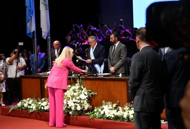 El gobernador, Osvaldo Jaldo, le tomó juramento esta tarde a Rossana Chahla como intendenta de San Miguel de Tucumán, en la sesión extraordinaria celebrada en el teatro San Martín.