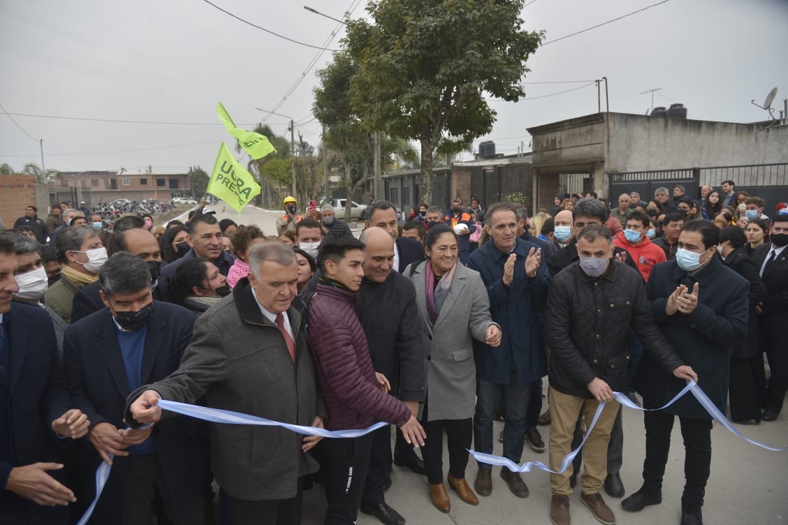 Las autoridades inauguraron la primera etapa de la obra sobre calle M. Perilli desde Granaderos hasta General Paz. En total, son 40 calles las que se pavimentan en el marco de este préstamo, que ya tiene un 50% de avance.