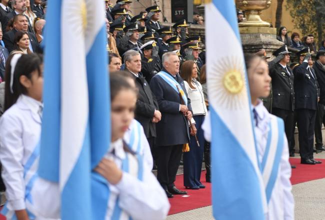 La docente de la escuela 240 ° Manuel Laínez, Marta Nieto, se mostró muy emocionada por la jura a la Bandera de sus alumnos frente al gobernador Jaldo.