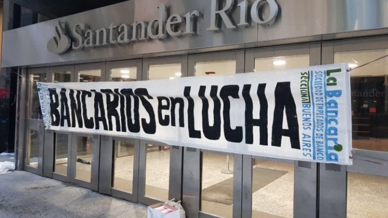La medida de fuerza es para reclamar contra la amenaza de despidos por el cierre de sucursales del Banco Santander e incumplimientos salariales.