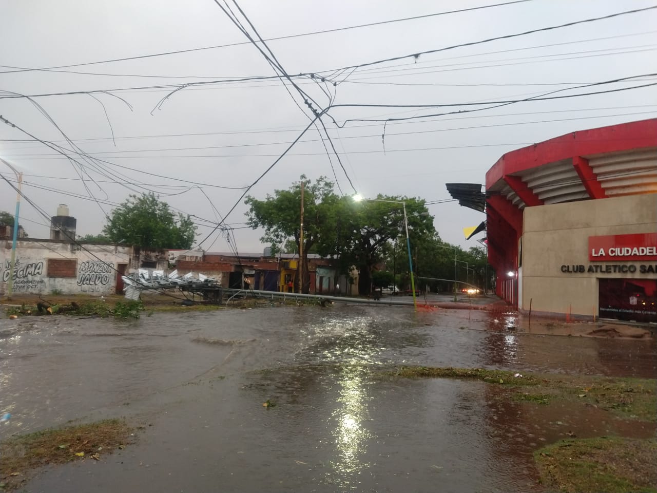 La fuerte tormenta con agua, viento y granizo que se ha desatado este miércoles por la tarde ha derribado las torres con la nueva iluminación que fueron terminadas de instalar pocas horas atrás en el estadio de San Martín tras meses de trabajo por parte de la subcomisión del hincha.