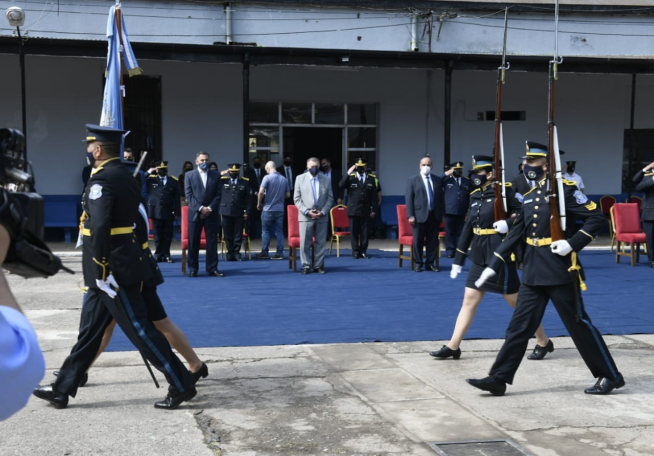 A su turno, Jaldo remarcó que la Policía es una de las instituciones tucumanas más antiguas «que nació muy cerca que cuando nació la Patria Argentina». «Hoy nos encuentra en un año de pandemia pero, con el esfuerzo del Gobierno de la Provincia, vimos una institución presente atendiendo el cuidado de la vida y la solidaridad, a la par del personal de salud ayudando a enfrentar el coronavirus», afirmó el Vicegobernador.