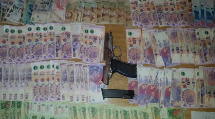 En ese momento, se inició una persecución que finalizó en una quinta de limones donde finalmente se logró reducir a uno de ellos que era quien tenía el portafolio con el dinero y un arma de fuego calibre 9 milímetros.