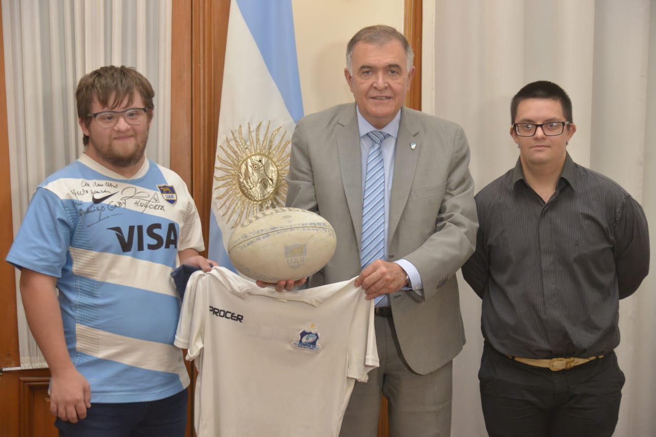El gobernador, Osvaldo Jaldo, se reunió con los rugbistas Gabriel Salazar y Patricio Cerrutti, y el entrenador Alejandro Rodríguez, quienes son miembros del equipo de Rugby Inclusivo del Club Cardenales y viajarán en junio a Cork, Irlanda, para representar a la Argentina en el IMART CORK Irlanda 2022, el mundial de rugby de habilidad mixta. La comitiva, que estuvo acompañada por familiares de los deportistas, fue encabezada por el presidente del Concejo Deliberante de San Miguel de Tucumán, Fernando Juri.