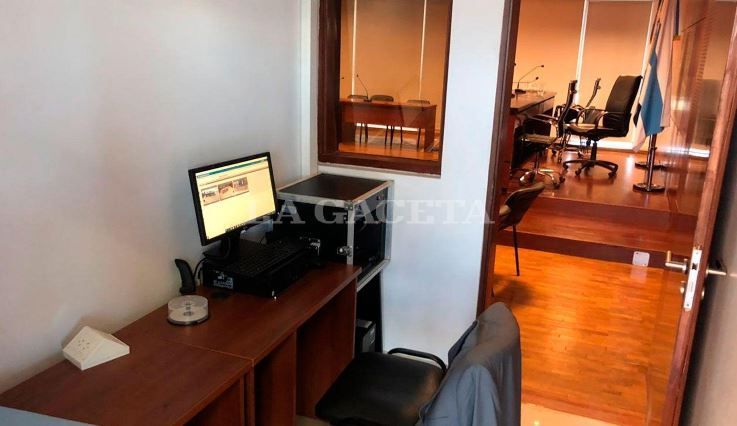 La denunciante, ex secretaria privada del senador nacional, se encontraba en una sala contigua al recinto en el que se desarrolló el debate. Angosta y vacía, con un escritorio y una computadora, así era la habitación desde donde vivió la audiencia la sobrina de Alperovich.