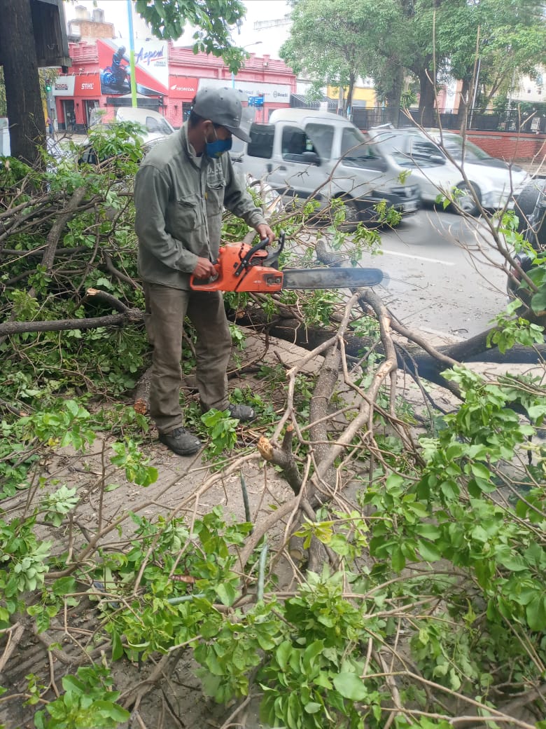 Tras la tormenta con fuertes vientos de ayer, la Dirección de Espacios Verdes de la Municipalidad de San Miguel de Tucumán desplegó un operativo para despejar la vía pública de árboles y ramas caídos.