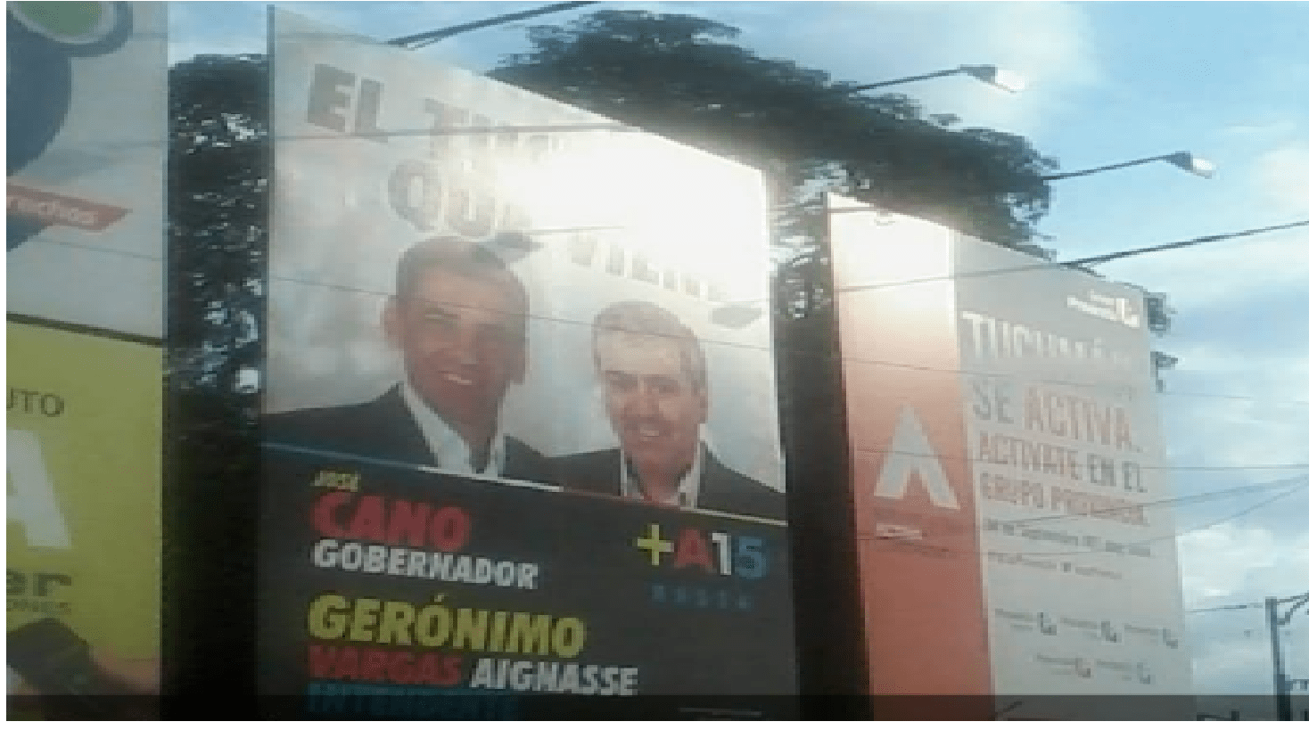 Con Afiches callejeros, Vargas Aignasse quería mostrar que era el candidato elegido a intendente de Cano. La senadora Elías de Pérez, el diputado Sacca y el edil Romano Norri también se disputaban la conducción de la Ciudad.