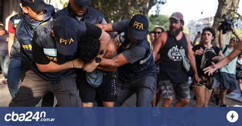 Luego se registraron distintos enfrentamientos entre los efectivos de seguridad y los manifestantes en los que hubo detenidos y heridos. «Fui reprimido. Estaba sentado, manifestándome pacíficamente y me pegaron patadas en la espalda», denunció el dirigentes de Unidad Piquetera Eduardo Belliboni.