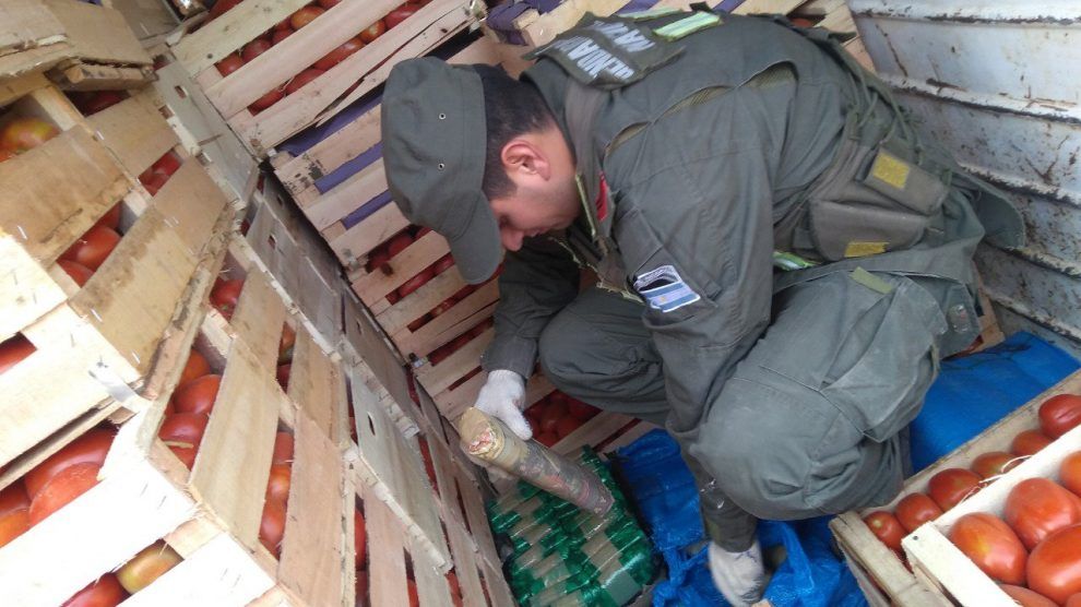 En su carga, el conductor llevaba tomates y berenjenas al Mercado Central de Buenos Aires. Sin embargo, una requisa durante la cual se utilizó el olfato agudo de un perro antinarcóticos, permitió descubrir los estupefacientes ocultos en un compartimiento.