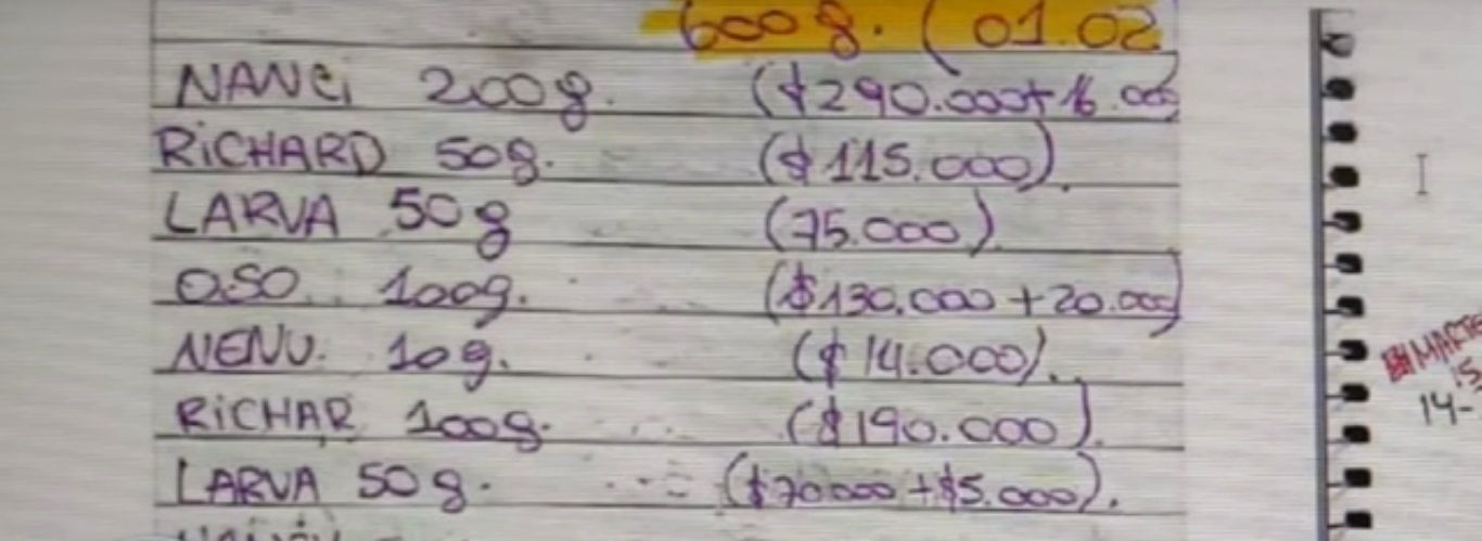 La información se desprende de distintas anotaciones que fueron secuestradas a la presunta banda allanada en varias oportunidades. El último cuaderno se le incautó a un policía retirado cuyo hijo es uno de los sindicados cabecillas de la estructura narco
