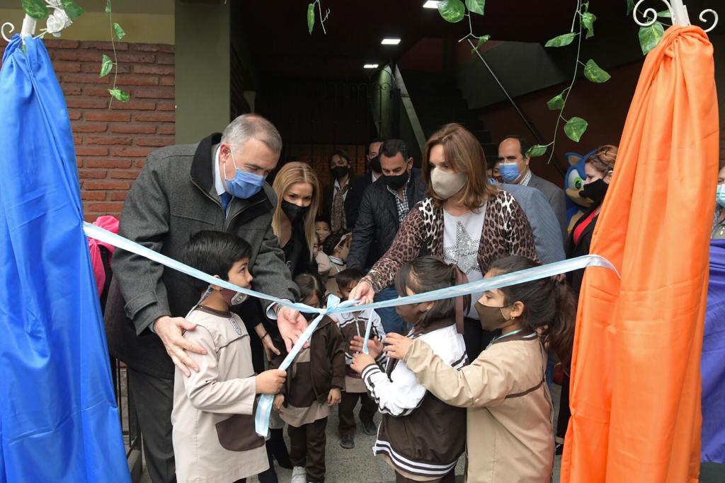 El gobernador Osvaldo Jaldo, acompañado del vicepresidente de la legislatura Regino Amado, Graciela Gutiérrez, el intendente Aldo Salomón, participaron de la inauguración del patio de juegos para nivel inicial del colegio San José Obrero, junto a la representante legal del establecimiento Gabriela Abdelsalib, el director del mismo Fabián Páez, alumnos, docentes y familiares, también participaron los concejales Fanny Salomón, Héctor Monteros.
