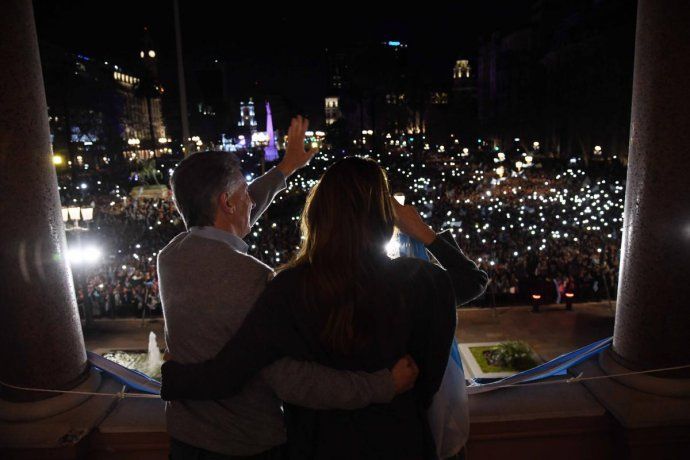 Una concurrida marcha en apoyo a la gestión del presidente Mauricio Macri se realizó este sábado desde el Obelisco hacia Plaza de Mayo y en otras ciudades del país. El mandatario arribó a la Casa de Gobierno pasadas las 19 y salió a saludar a los presentes desde el histórico balcón junto a su mujer Juliana Awada.