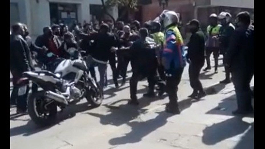 En la tarde de ayer, frente del gremio de SEOC, municipales intentaron llevarse las motos que se encontraban estacionadas en un lugar no permitido, cuando terminaron enfrentándose con sus propietarios. Las imágenes hablan por sí solas, a golpes de puños, patadas, empujones e insultos terminaron enfrentándose.