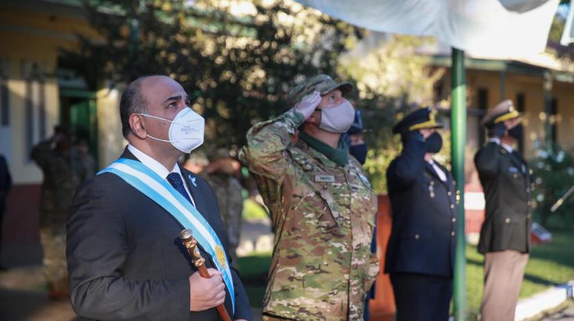 El mandatario participó del izamiento que se llevó a cabo en el Liceo Militar Gregorio Aráoz de Lamadrid.