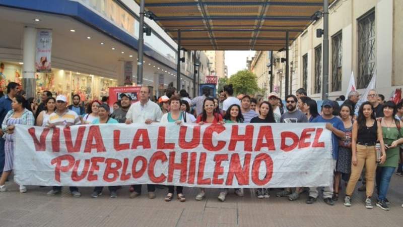 «Viva la lucha del pueblo chileno». El cartel escrito con letras rojas sobre una tela blanca apareció este miércoles por las calles del microcentro tucumano.