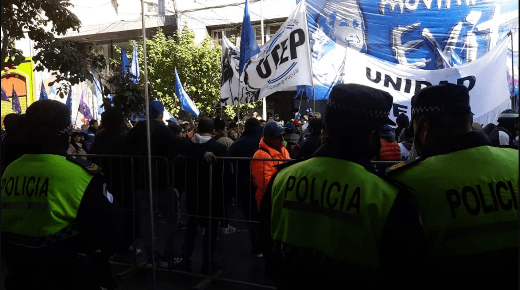 El Movimiento de Trabajadores Excluidos realiza una protesta en las instalaciones del Concejo Deliberante, para manifestarse en contra de la implementación del Estacionamiento Medido, el cual entró este lunes en vigencia, por disposición de la Municipalidad de San Miguel de Tucumán.