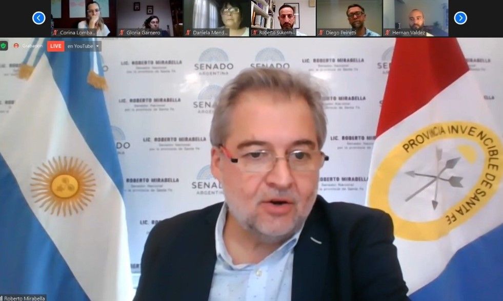 El senador nacional Roberto Mirabella y el Ministro de Trabajo de la Provincia de Santa Fe, Roberto Sukerman, disertaron en el Encuentro Virtual «Teletrabajo: de la Ley a la Implementación», que fue organizado en conjunto por la Municipalidad de Rafaela, la Universidad Nacional de Rafaela (UNRaf) y el Gobierno de la Provincia de Santa Fe. “El espíritu de esta ley no es fomentar el teletrabajo sino fijar condiciones para esta nueva modalidad y que requiere la protección de derechos y garantías de los trabajadores» remarcó Mirabella durante su disertación.
