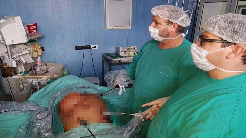 “El paciente, fumador de años, fue operado hace seis meses con una cirugía convencional. Luego de eso, presentó una apertura en el abdomen, hernias que producen la apertura de la pared abdominal. Terminó con una eventración gigante, estamos hablando de más de 30 centímetros en el abdomen superior y se extendía hasta el ombligo. Entonces, lo sometimos a una cirugía laparoscópica que es la primera que hacemos en nuestro hospital, para nosotros fue inédita. Se hizo con personal capacitado en esto, con la tecnología que fue aportada por la Ministra de Salud Pública, Rossana Chahla”, contó el jefe de Cirugía del hospital Regional de Concepción, Luis Cano.