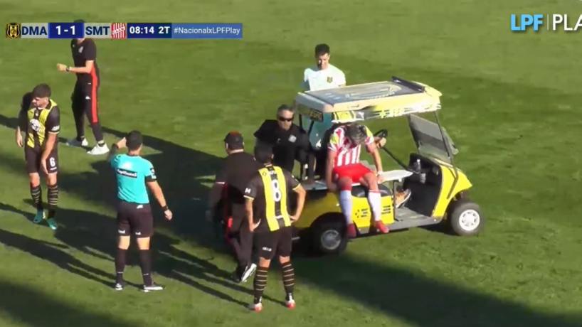 Ovando sintió un fuerte dolor en la rodilla e inmediatamente pidió el cambio desde el suelo: apuraron al carrito del local y el cuerpo médico de San Martín constató la gravedad de la lesión y también pidieron el cambio inmediatamente.